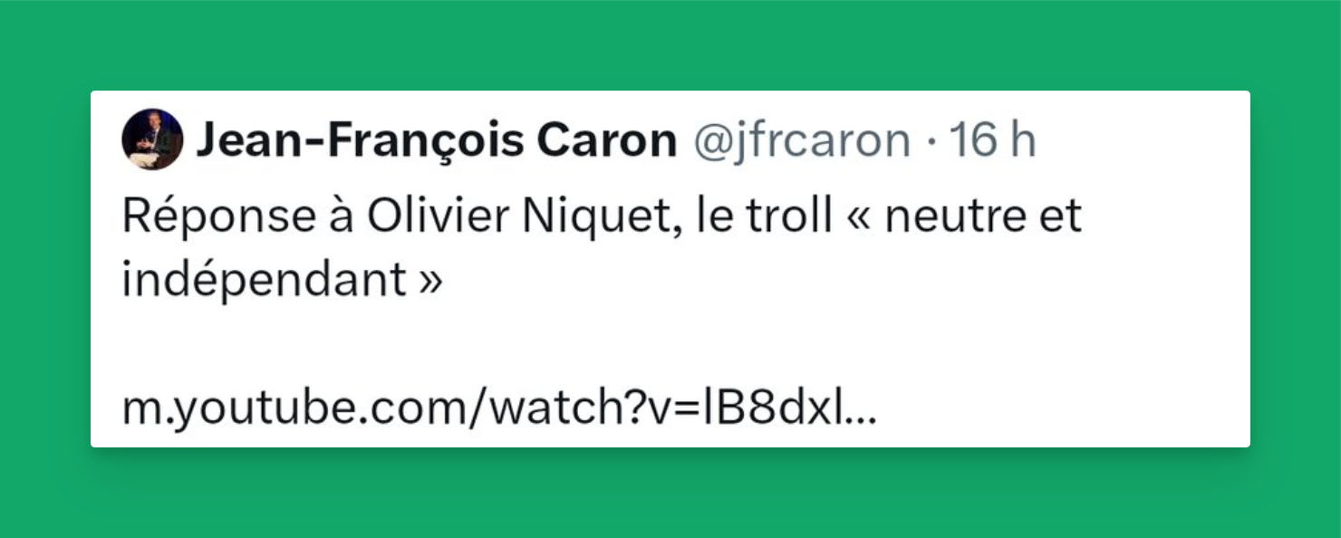Une vidéo qu’il a publiée sur X avec la mention « le troll neutre et indépendant ». J’accepte l’appellation de troll, mais je n’ai jamais dit que j’étais neutre et indépendant.