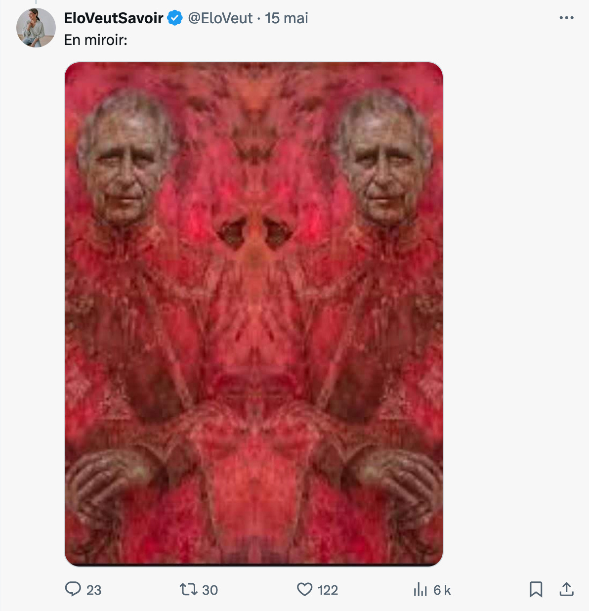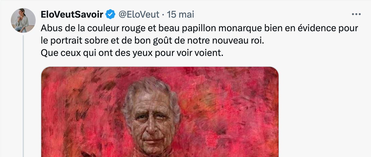 Pendant ce temps, Éloïse Boies, militante anti mesures sanitaires qui est intervenue souvent à Radio X ou chez Libre Média et qui a fait une entrevue avec Stéphan Bureau, a vu des choses dans la toile de Charles III.