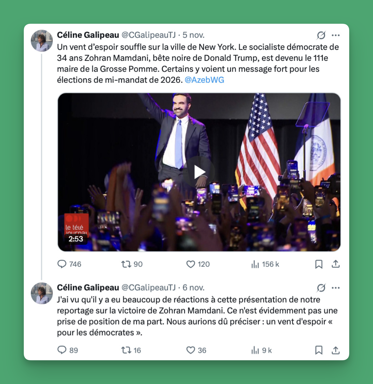 Sur les réseaux sociaux et à la radio, des gens ont déchiré leur chemise devant cet appui à Mamdani. C’est sûr que c’est une phrase équivoque, et devant le tollé (essentiellement, des trolls qui ont dû la harceler), elle a donc fait une précision.