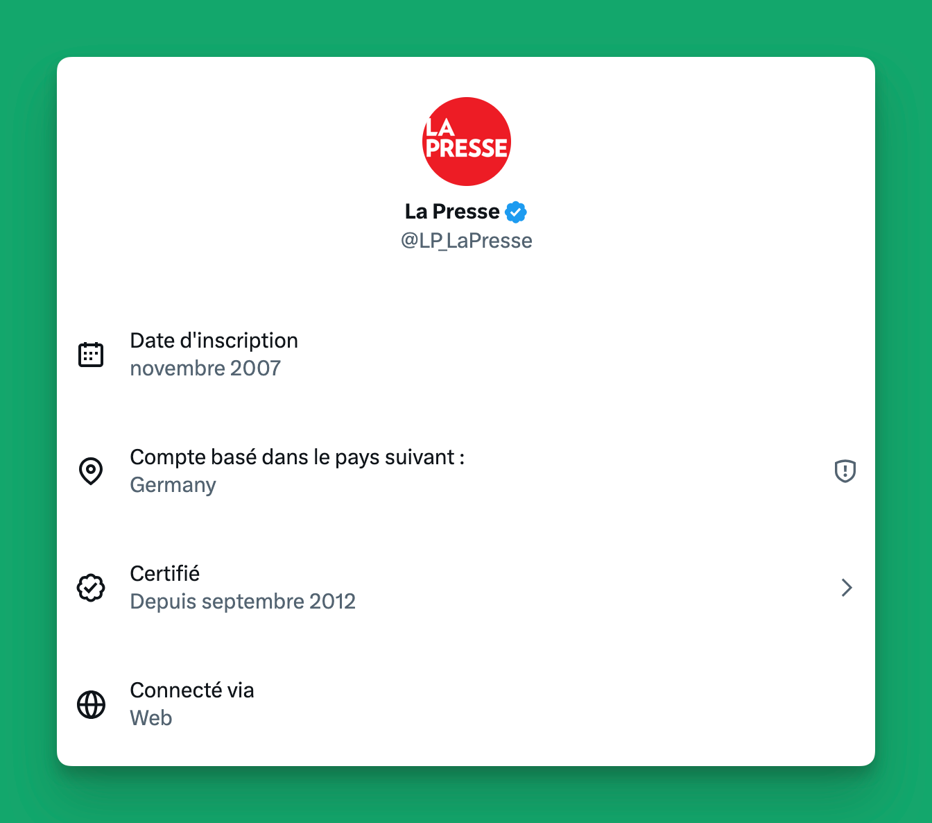 C’est là où nous en sommes sur X. Et pas juste là. J’aimerais bien obtenir les mêmes informations sur les comptes Bluesky, Facebook ou Instagram. Je pense bien qu’un jour on va en arriver là. À moins qu’on arrive à la fin du monde avant.
