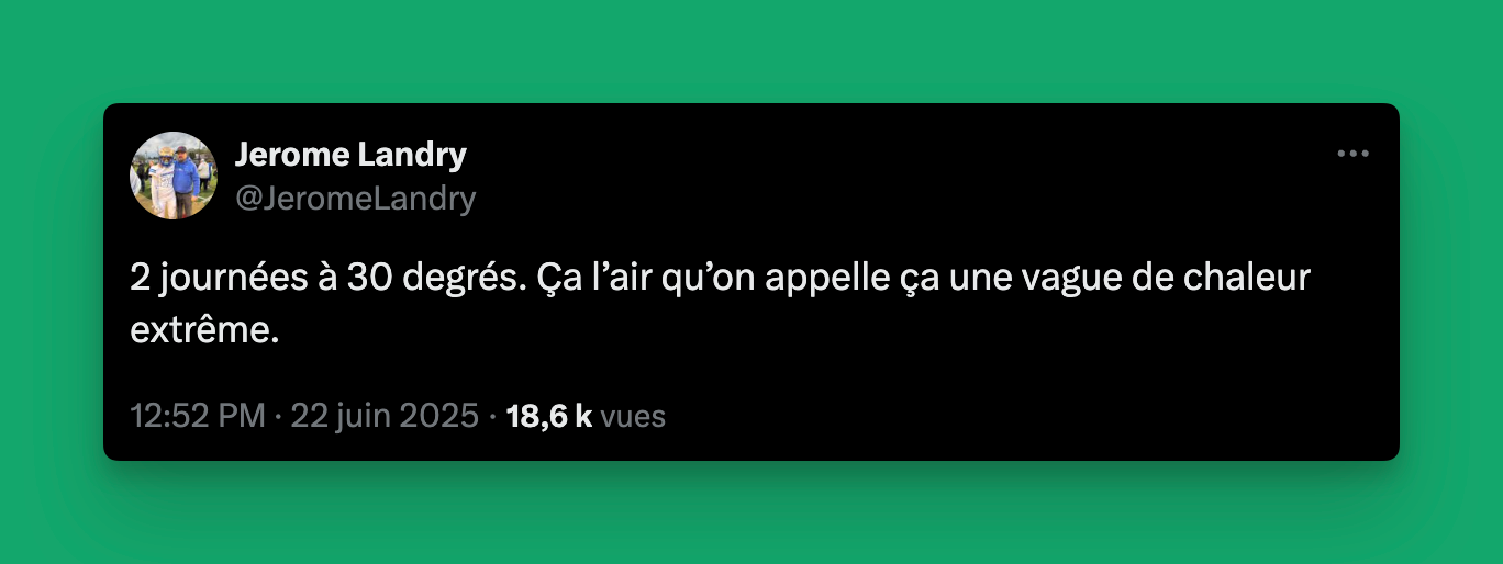 Grosse semaine en la matière. C’est rendu que ce n’est pas correct de prévenir les gens des dangers de la canicule.