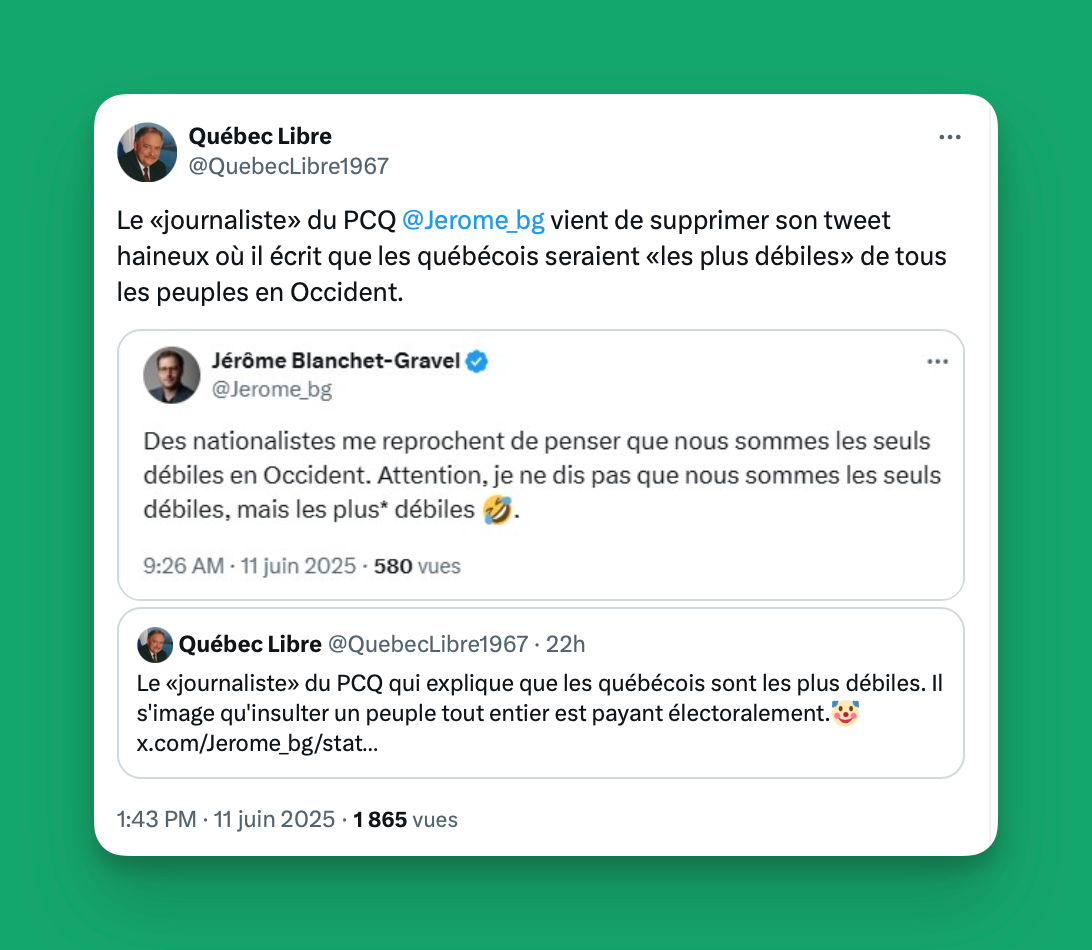 Encore une fois, Jérôme Blanchet-Gravel nous expose tout son amour du peuple.