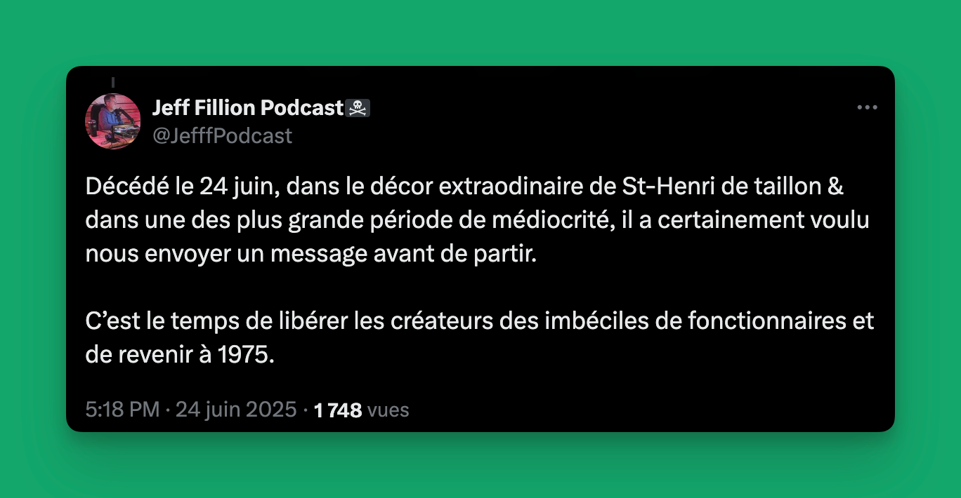 💬 Dire que j’ai entendu à la radio que Carney et son épouse étaient des écolos radicaux.