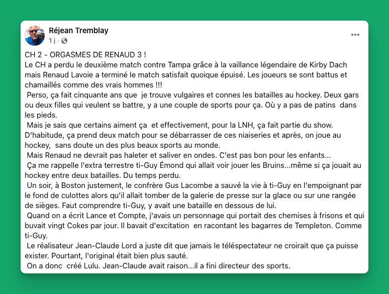 « Je pense que c'est un moment où il faut faire son examen de conscience. Tu sais, ça va nous tourmenter longtemps – je vais l'être. Et je tiens à dire que je suis désolé d’avoir induit les gens en erreur. Ce n’était pas intentionnel. »